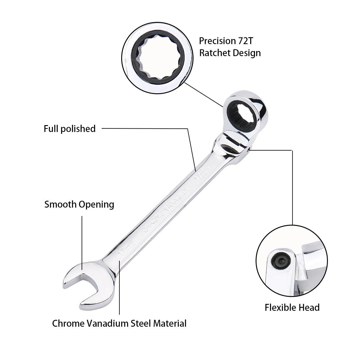 Ratchet Wrench of Keys Spanner Set Ferramenta Mão 72-Tooth Ratcheting Flexível Cabeça Espelho Acabamento